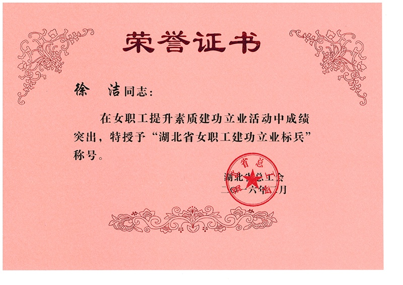 徐洁获湖北省女职工建功立业标兵