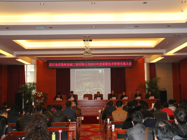 2014年1月8日,武基公司召开了2013年度质量技术管理交流大会。武汉市建筑工程质量监督站总工程师郑祥斌,武汉市深基坑专家委员会成员向艳,中国地质大学(武汉)勘察与基础工程系书记、博士后导师窦斌教授,武汉沿海地产总经理李晓龙等专家以及公司领导班子成员、公司各部门工作人员、各工程处技术管理人员等80多人参加了会议。