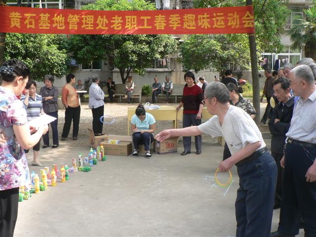 2011年5月9日~13日,黄石基地管理处分别在冶金队小区、楠竹林小区、地质里小区举办了以“参与、快乐、健康、和谐”为主题的离退休(退养)职工趣味运动会。