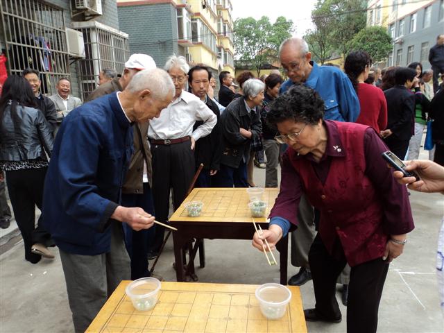 此次趣味运动会共设有“双扣”、象棋、模拟保龄球、掷飞镖、夹玻璃球、托球跑、套圈等7个项目,来自3个小区的400余名离退休(退养)老职工参加了各个项目的角逐。