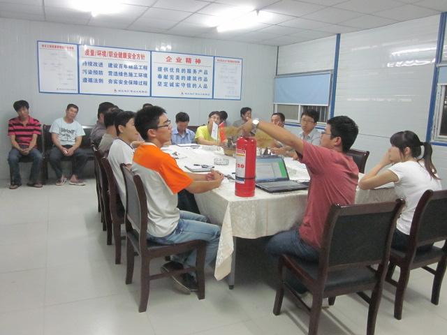 项目安全员曹帅从“如何防火”、“如何灭火”、“如何逃生”等三个方面详细而全面的讲述了基本的防火、灭火及自救逃生常识,并进行了消防器材的使用演练。