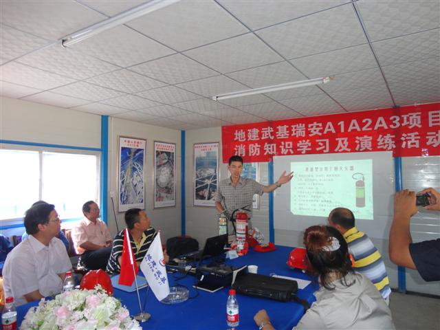 2011年7月1日,为了进一步提高大家的消防意识和火灾防控能力,加强大型施工项目消防安全生产工作,武基公司在瑞安永清片A1A2A3地块施工项目成功举办了一期消防知识培训。湖北省消防协会安全服务中心的欧阳宾警官,结合火灾事故案例和实例图片,生动的讲解了《消防法》,消防安全管理,灭火、火场逃生等基本知识,并进行了现场实地灭火演练。 当地街办领导,业主和监理代表,公司安全生产部、工会、办公室、项目施工和管理人员参加了消防演练。