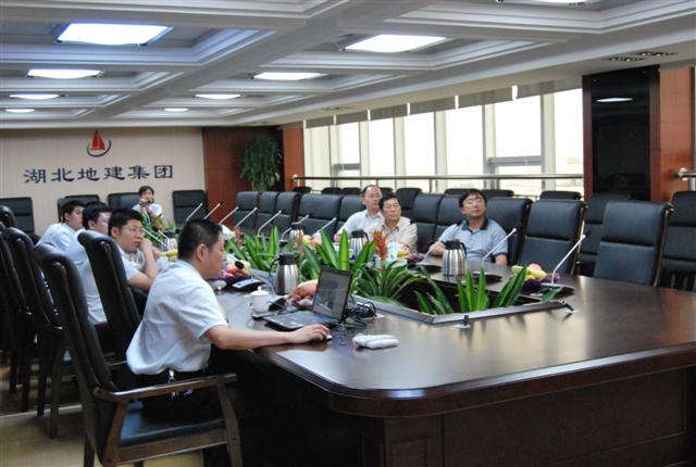 2011年7月12日,湖北省商务厅外经处领导莅临海外事业部检查指导工作。海外事业部经理王国庆,总支书记、副经理刘钢汇报了海外事业部成立以来的各项工作情况。商务厅外经处处长唐华、副处长石明辉对海外事业部的工作成绩给予了充分的肯定,对湖北地建集团进一步开拓海外市场,全力推行“走出去”战略,构建“两个经营中心”(以沙特市场为中心带动中东及非洲市场;以越南市场为中心带动越南及东盟市场)、“以地带建”(以地质勘查带动工程市场)和“以矿带建”(以矿产勘查开发带动工程市场)的市场战略表示赞赏,并表示将全力支持“湖北地建”走向海外。双方就当前国际形势、投资环境、海外市场格局、经营战略等进行了深入的交流。
