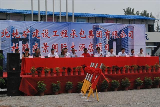 8月8日9时58分,锣鼓声声,鞭炮齐鸣,施工机器的轰鸣声中地建承包公司麻城杜鹃盛景国际大酒店项目隆重开工。湖北地建集团董事长兼总经理程立文、副总经理王国庆,欧亚冠达董事长黄顺乐,麻城市城建局副局长张良,中驿镇党委、政府领导,监理单位负责人及麻城市媒体,海外事业部项目管理人员、工人共计100余人参加了项目开工典礼。麻城市副市长郝胜勇、冯向在市长办公会结束后,专程到会祝贺。