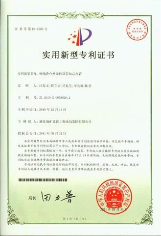 该专利是湖北地建集团2011年度继“钻孔灌注桩可回收吊筋结构”、“自动单向阀式压力注浆装置”后取得的第3项实用新型专利。