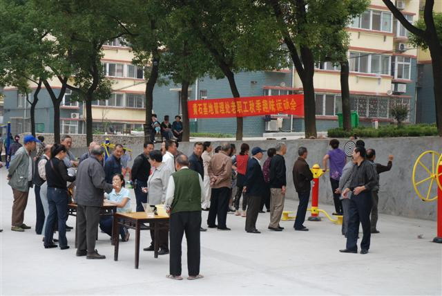 为丰富离退休老职工业余文化生活,促进老同志身心健康,推动和谐基地建设,2011年10月13至15日,黄石基地管理处分别在冶金队小区、楠竹林小区和地质里小区召开了老职工秋季趣味运动会。基地管理处300多名老同志满怀愉悦的心情参加了掷飞镖、投保龄球、套圈、夹玻璃球、双扣等比赛项目。