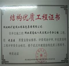 由湖北地矿建设工程承包集团有限公司承建的湖北省高级人民法院二号办公楼工程被武汉市优质结构工程评审委员会授予“武汉市建筑结构优质工程”称号。