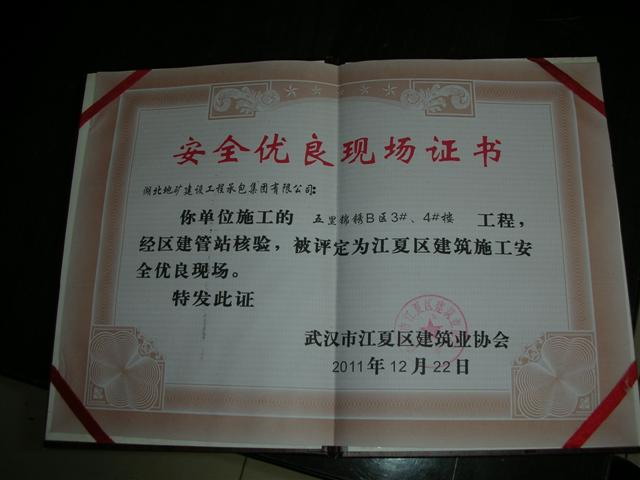 楼项目被江夏区建筑业协会评为江夏区建筑施工安全优良现场。