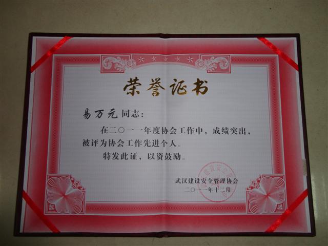 武基公司荣获2011年度武汉建设安全管理协会工作先进单位