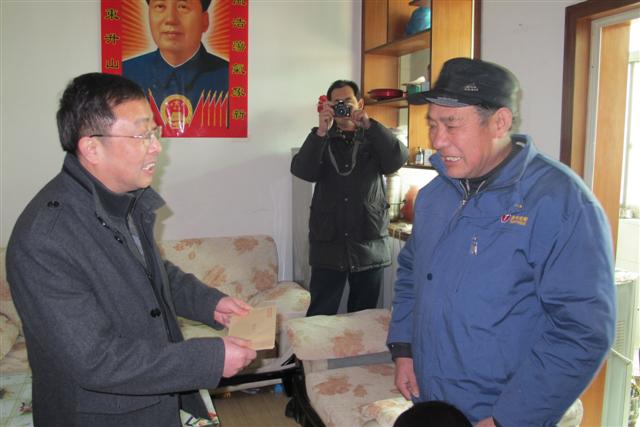 2012年1月16日,省地矿局总工马元等一行3人在工程院党委书记李小林、黄石基地主任龙泽华、黄冈基地主任饶水明的陪同下,对黄石、黄冈基地管理处困难职工家庭进行春节慰问走访。