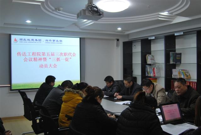 3月5日,海外事业部召开专题会议传达院五届三次职代会精神,对“三抓一促”活动进行动员部署。海外事业部总支书记兼副经理刘钢主持会议。