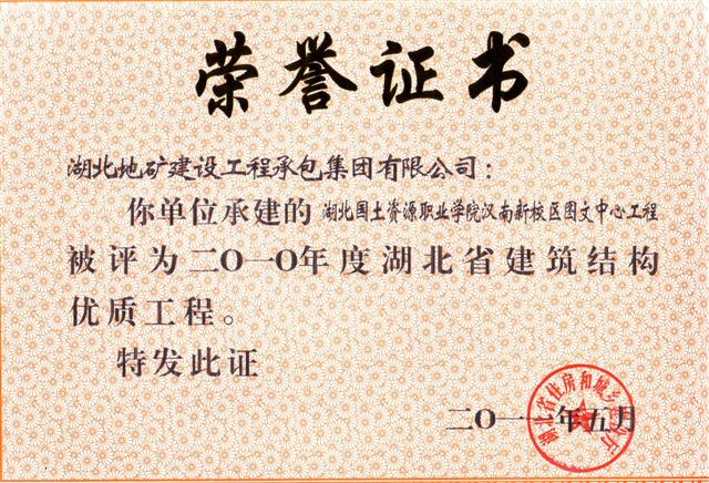 据悉,“安全文明施工现场(楚天杯)”奖是湖北省建筑行业安全文明施工的最高荣誉奖项,目的在于鼓励建筑施工企业搞好安全文明施工,提高全省建筑施工安全生产水平。该奖项的评定是从建设、施工、监理等方面,对项目现场进行全方位考评。 另讯,日前收到湖北省住房和城乡建设厅文件《关于公布2010-2011年度第一批湖北省建筑结构优质工程名单的通知》(鄂建文〔2011〕61号),地建承包公司承建的湖北国土资源职业学院汉南新校区图文中心工程和鄂东北地质大队孝感基地经济适用房工程名列其中。