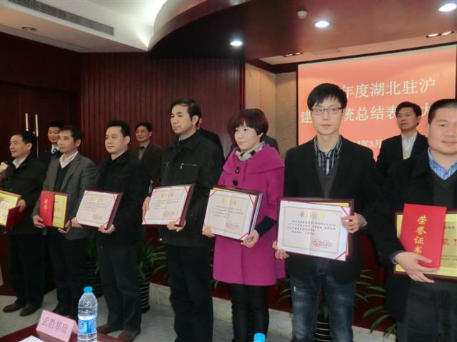 日前,湖北省驻沪办事处举行了2011年度湖北驻沪建筑系统总结表彰大会,湖北地建上海分公司荣获湖北省驻沪建筑系统2011年度先进单位光荣称号,湖北省驻沪办事处主任宋悦明亲自为获奖单位颁奖。湖北地建上海分公司经理夏焰光作为先进单位代表在会上作交流发言,湖北地建上海分公司袁晓路、鲁天骄也分别被评为湖北省驻沪建筑系统先进个人和优秀项目经理。