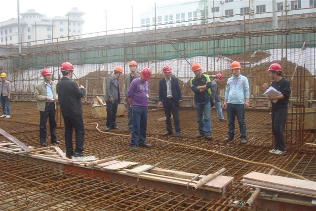 下午,地质职工医院住院大楼地基钢筋顺利通过了由建设单位黎晓龙,设计单位黄飞,勘察单位马成以及监理单位熊斌等组成的验收组验收。