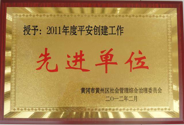 黄冈基地被评为黄冈市黄州区2011年度平安创建工作先进单位