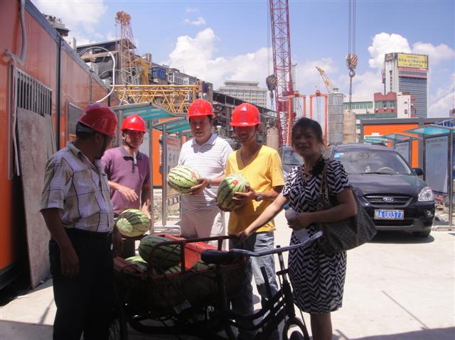 一份清凉,一份关怀。公司防暑降温工作组冒着炎炎烈日将购买的绿豆和西瓜送往各在建施工项目工地,将公司的关心和清凉及时传递到施工一线员工。该活动极大的鼓舞了公司一线员工的士气,也为夏季安全生产营造了“和谐安康”的良好氛围。