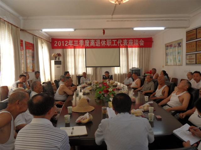 8月7日,黄冈基地管理处在3楼会议室召开了2012年第三季度离退休职工座谈会。基地班子成员、离退休科长、物业中心经理和离退休职工代表20余人参加了座谈会。