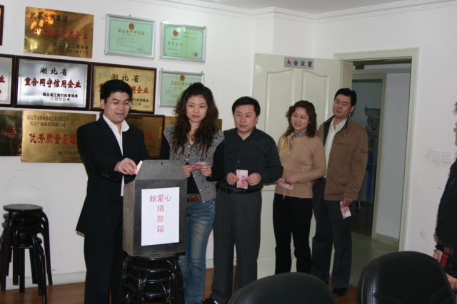 近日,武基公司职工胡平同志因心肌梗塞在同济医院住院治疗,由于该同志病情严重,家庭困难,难以承受高额的住院治疗费用。在武基公司工会的组织和倡议下,公司广大职工自愿捐款,纷纷献出自己的一份爱心。目前公司和公司员工所捐爱心款共14610元,已全部交给胡平妻子娄平秀同志手中。