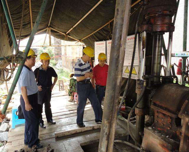 8月28日,省地矿局安全督察组姜建平一行3人在工程院探矿工程公司经理史立京,工程院工会主席王文斌、安全科科长陶兴文的陪同对探矿工程公司阳新汪伍屋矿区项目进行了安全检查。