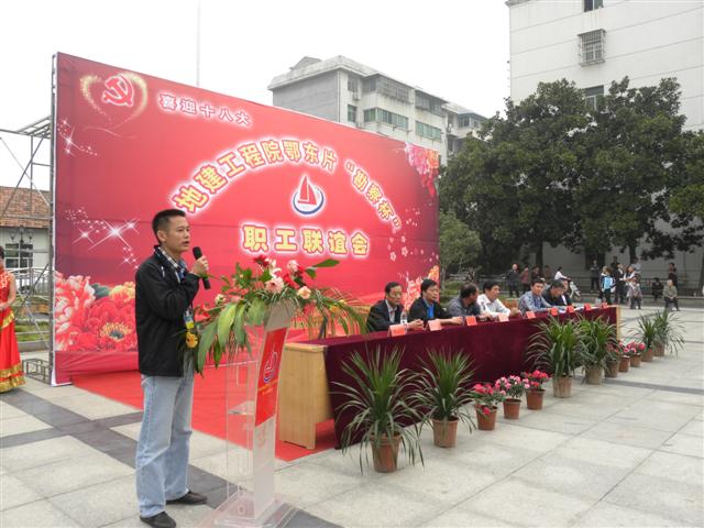 10月14日,黄冈基地管理处花团锦簇、彩旗飘扬,工程院鄂东片“勘察杯”职工联谊会在这里隆重举行。联谊会为期一天,设有开幕式文艺表演和乒乓球单打、羽毛球团体、象棋、围棋团体、飞镖团体、“拖拉机”团体6个比赛项目。院属勘察公司、房地产公司、黄石基地、黄冈基地、黄石分公司5个体育代表队参加了以上项目14个奖项的角逐。活动得到了上级工会组织的大力支持,省地矿工会领导、工程院工会领导到会并分别发表了热情洋溢的讲话。