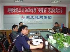 4月17日下午,湖北地建承包公司本部召开2009年度“安康杯”活动动员大会,公司领导、部门主管、直属项目部经理、技术负责、专(兼)职安全员等近30名同志参加了会议。