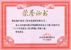 4月24日,武汉市工程建设管理工作会议在市政府小礼堂召开。会上公布了“2008年度建设工程文明施工优良、样板工地(项目)及文明施工管理优秀项目经理 ”名单,湖北地建承包公司承建的省地调大楼项目获得“建设工程文明施工样板工地” 称号,湖北地调大楼项目经理李彦被评为“文明施工管理优秀项目经理 ”。