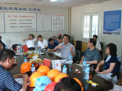 6月10日上午10点,湖北省地矿局局长、党组书记谢连平率全体党组成员及相关处室主要负责人一行到湖北地建承包公司承建的湖北省地调科研大楼项目进行视察。通过深入施工现场实地检查,在听取地调大楼项目部项目经理李彦同志的详细汇报后,谢局长对地调大楼目前的工作情况表示了积极的肯定,并对地调大楼周边的规划情况给与了极大的关注。他指出:地调大楼是地矿局的重点项目,最关键的是要把规划做好,这样才能为未来的后续项目起到标志性作用。
