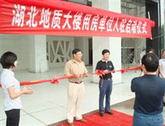 2009年7月31日,由湖北地矿建设工程承包集团有限公司承建的湖北省地质科研大楼项目举行了隆重的用房单位入驻启动仪式。省地矿局副巡视员叶明瑞,计财处处长李文龙为大楼剪彩,各入驻单位领导和业主代表进入大楼进行参观,对地调大楼的建设给予了高度的赞赏。