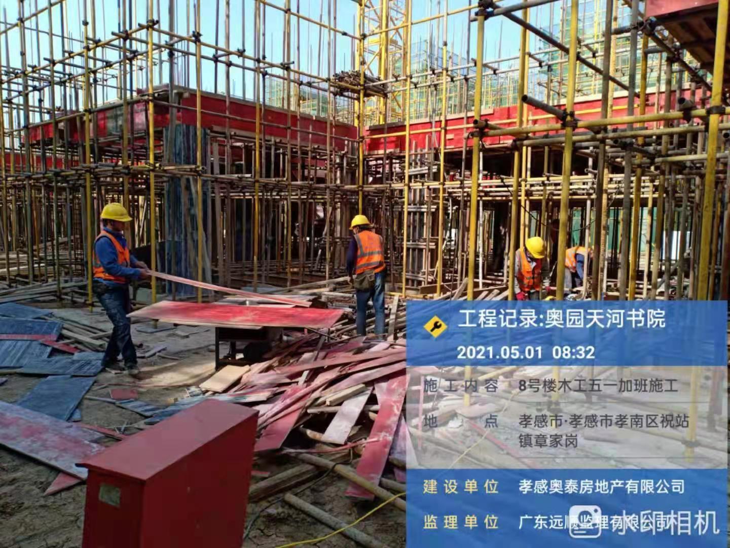 中楚公司湖北国土资源职业学院实验楼项目、西商房县绿色农港项目管理人员放弃休息,坚守在施工一线,抢时间赶进度。