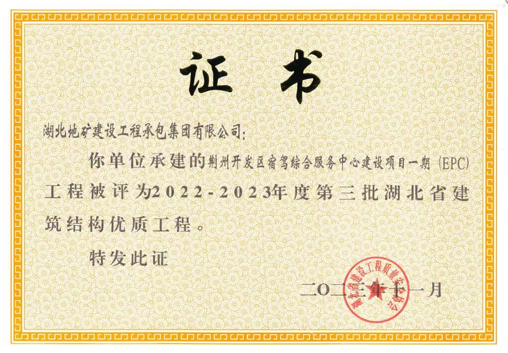 近日,承包公司承建的荆州开发区宿驾综合服务中心建设项目一期(EPC)工程获得“2022-2023年度第三批湖北省建筑结构优质工程”称号。