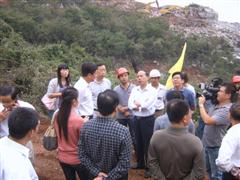 上午9时40分许,黄石市市委书记王建鸣与市各级领导一行二十余人从板岩山脚出发,驱车沿着新修建的盘山公路来到山顶,在认真听取了项目经理张金刚的汇报后,王建鸣要求,全市各相关部门都要关注板岩山危岩体地灾防治工程,主动帮助施工方解决难题。最后他强调,施工过程中,要始终把安全放在第一位,确保工程进度,要把板岩山打造成一个人与自然和谐共处的良好生态人居环境区,工程治理完成后确保永无隐患。