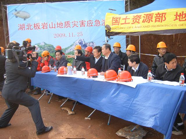 黄石市市委书记王建鸣、国土资源部环境司司长关凤俊、中国地质环境监测院副院长田延山、省国土资源厅总工程师徐振坤、田大佑处长、施伟忠副处长、湖北地建集团陈少平总工等各级领导出席了演练观摩现场。