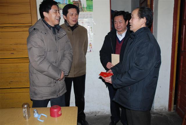 2008年1月24日,省地矿局副局长宋悦明同志在湖北地建工程院党委书记谭林峰同志的陪同下,顶着凛冽的寒风,冒雪来到黄石基地管理处,对离退休老同志、困难职工和困难职工遗属走访慰问,并送去了党的关怀和新年美好的祝福。