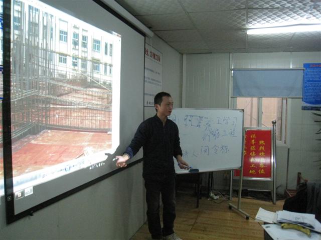 湖北地建承包公司大冶湖滨广场项目部为培养管理人员学习能力,加强业务知识,进一步提高管理水平,特举行为期两周,主题分别为测量工程、模板工程、钢筋工程、混凝土工程、抹灰施工工艺、工程预算和安全管理等七个课题的学习交流活动。主讲人分别为项目部各工种工长和相关岗位人员。大家作面对面的交流,气氛十分热烈,这次活动也为打造“学习型项目部”,提高工程管理水平起到极大的促进作用。