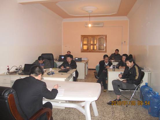 在利比亚期间,王国庆同志考察了利比亚房建项目其他地块的现场施工进展情况,要求项目部领导班子总结别的地块施工得失,勤于思考,力争在以后的施工中少走弯路。