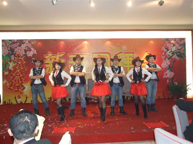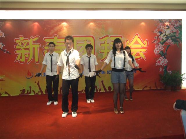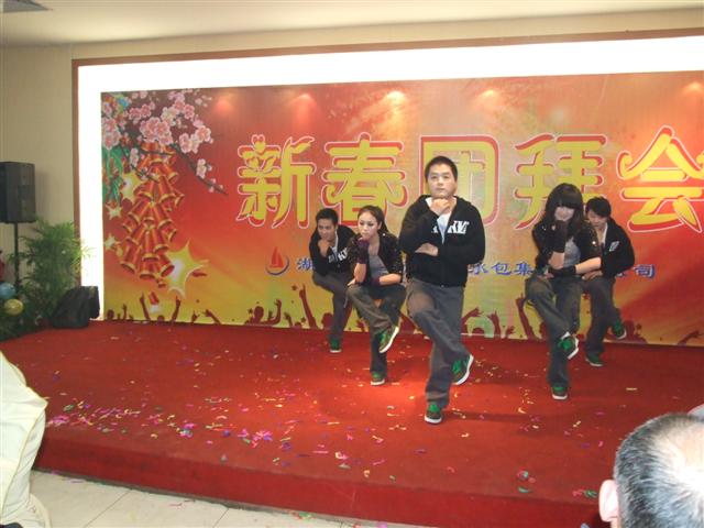 团拜会在16:30时正式开始,首先由集团董事长兼总经理程立文先生致辞,并激情演唱一曲《为了谁》,拉开了晚会序幕,充满温馨与浪漫的晚会将大家带入一片快乐的氛围之中。随后合唱《精忠报国》、舞蹈《nobody》、花鼓戏《刘海砍樵》等让观众连声叫好,小品《唐伯虎点秋香》、舞蹈《super dance》、肚皮舞表演将晚会推向高潮,台下观众欢声不断。晚会中,集团党委书记吴国才、工会主席张鹤峰都参与激情演唱,欢笑声和掌声贯穿晚会始终。