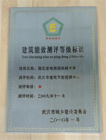 湖北省地调大楼项目被武汉市建委授予建筑能效一星级标识牌