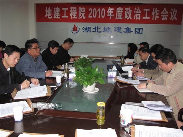 4月21日,湖北地建集团2010年政治工作会议在汉隆重召开,会议由集团纪委书记兼工会主席张鹤峰主持,参加会议的人员有地建集团党政领导、集团下属各单位党总支(支部)书记、工会主席和机关部分科室负责人。