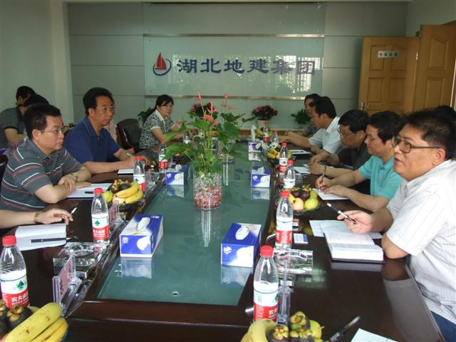 2010年6月2日,湖南省地矿局党组书记、局长叶爱斌一行12人在湖北省地矿局副局长曾环宇、副巡视员叶明瑞、工程地质处处长沈顺照、局办公室主任李华等的陪同下到湖北地建集团考察调研。集团领导程立文、吴国才、吴贤亮、梅焱祥、易万元、张鹤峰、陈少平参加了座谈。