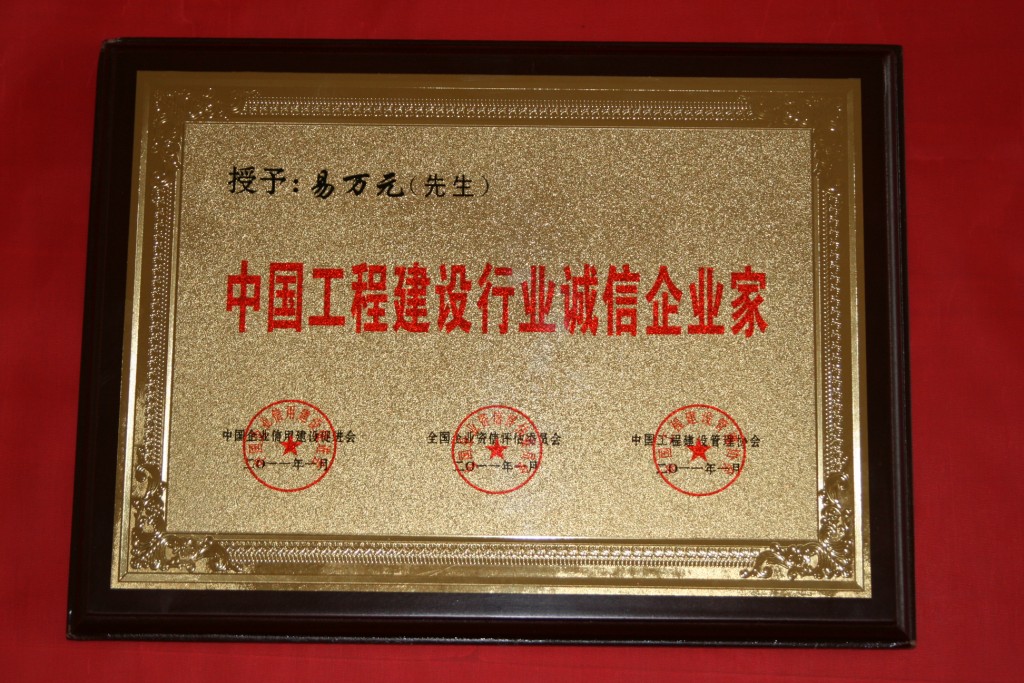 级信用施工示范单位”荣誉称号,公司总经理易万元被授予“中国工程建设行业诚信企业家”荣誉称号。