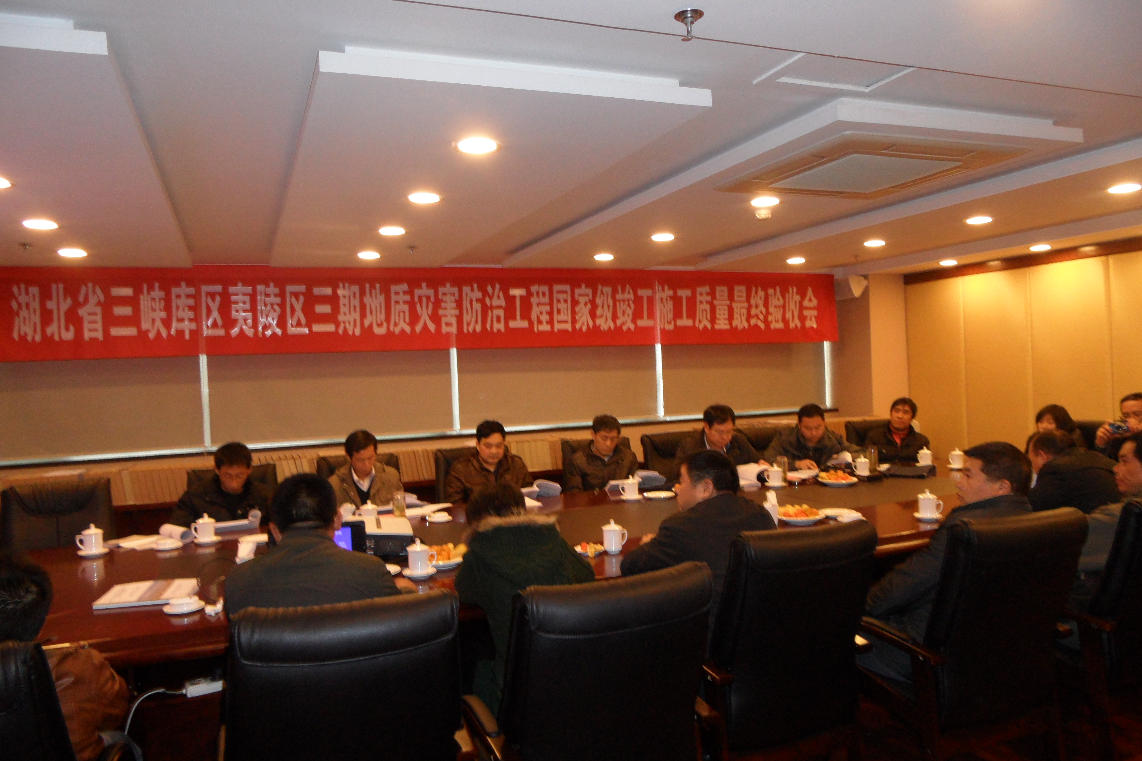 2011年3月23日至26日,由三峡库区地质灾害防治工程指挥部组织的三峡库区三期非应急项目最终验收会在宜昌隆重举行。参加会议的有国土资源部地质环境司副司长、三峡地灾防治指挥部和省国土资源厅领导、验收组专家及业主和参建方代表共计80余人。由湖北地矿建设勘察有限公司承接的三峡库区湖北省兴山县张家坪滑坡施工项目和夷陵区东岳庙滑坡监理项目参加了此次验收会,并顺利通过验收。