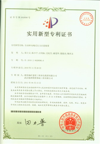 日前,由湖北地矿建设工程承包集团有限公司和武汉地质勘察基础工程有限公司联合申报的“自动单向阀式压力注浆装置”技术被国家知识产权局授予实用新型专利。这是继“钻孔灌注桩可回收吊筋结构”取得实用新型专利权后的又一项专利成果。
