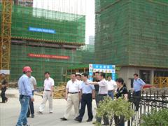 5月31日上午10点,武汉市江汉区区长李强在江汉区房地产公司总经理夏震的陪同下来到湖北地建承包公司承建的广益天下工程项目视察。